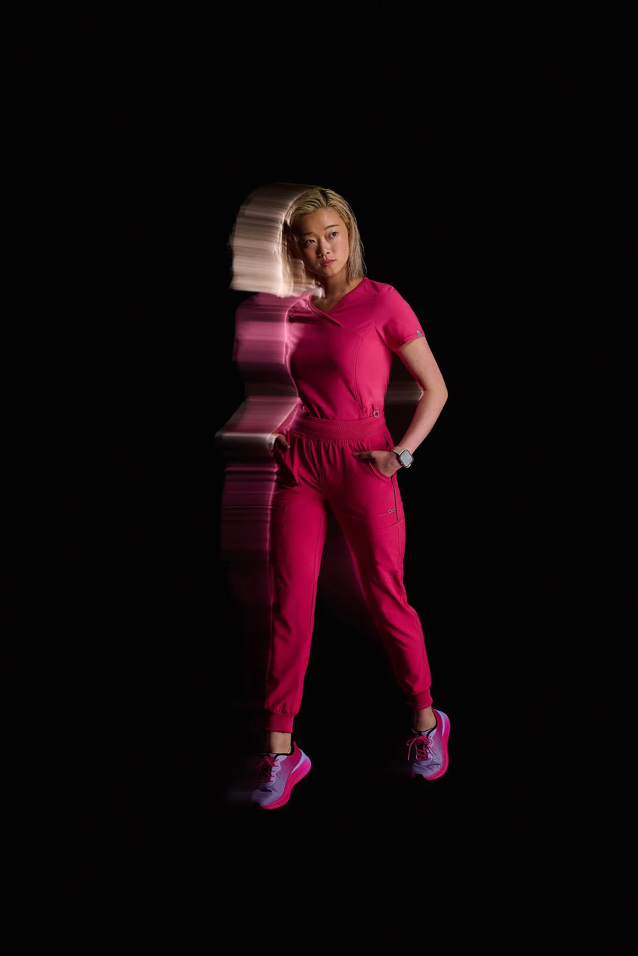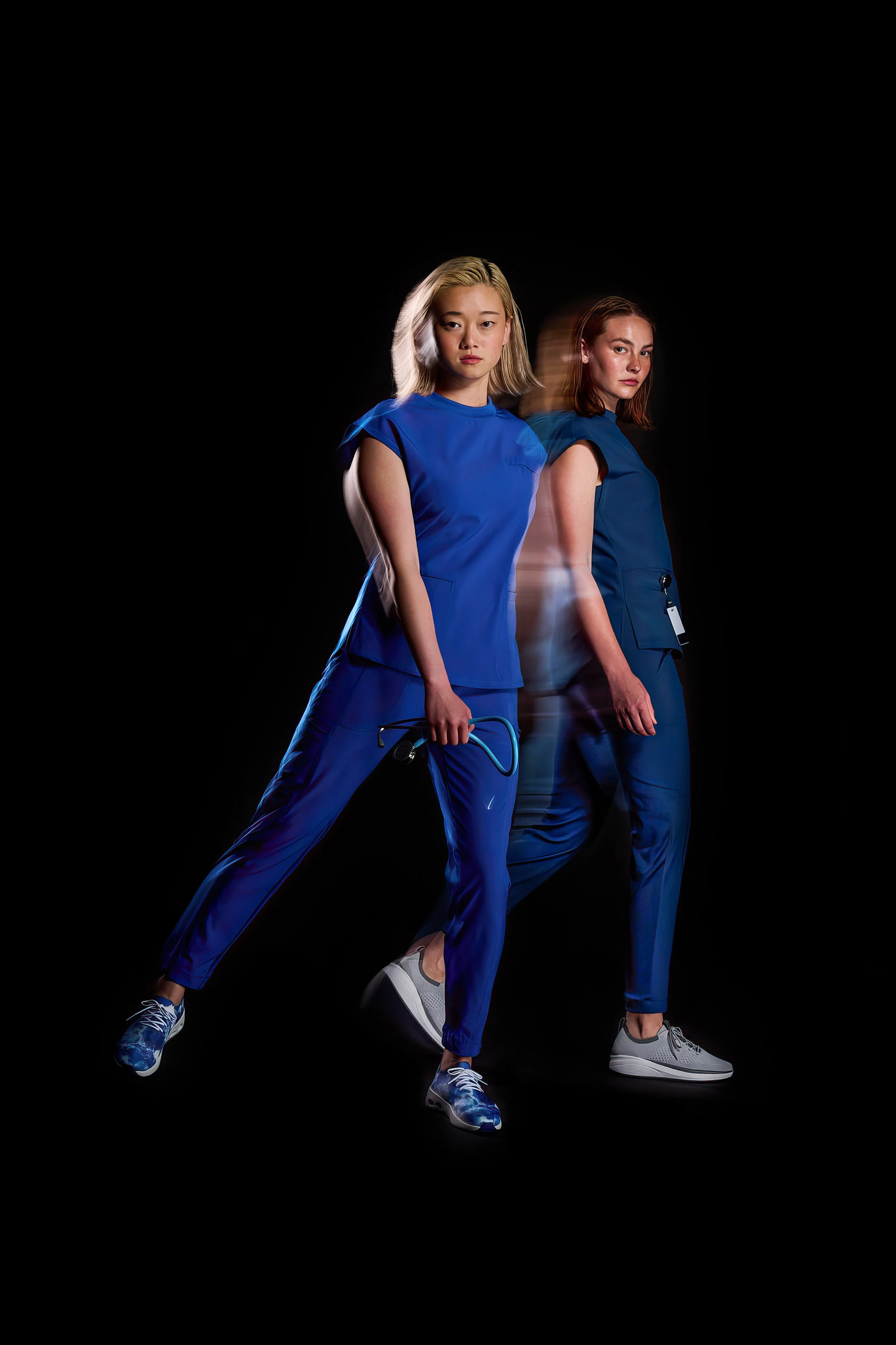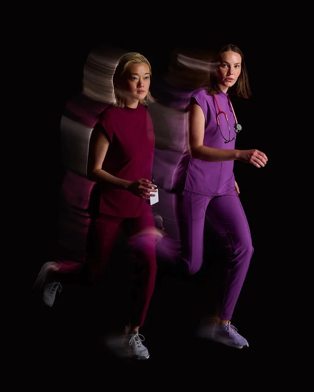 Art direction for a fall/winter colorway launch within the Infinity scrubs collection, shifting the visual tone to a more contrast-driven and seasonal direction.